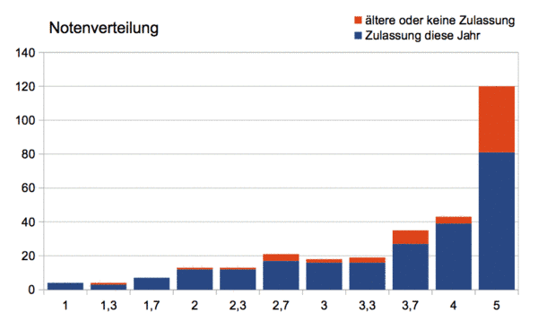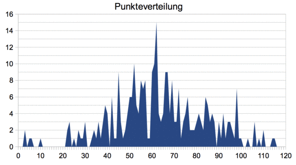 Die Ergebnisse der Klausur finden sich nun im L2P. Im folgenden findet Ihr das der Noten sowie die Punkteverteilung.